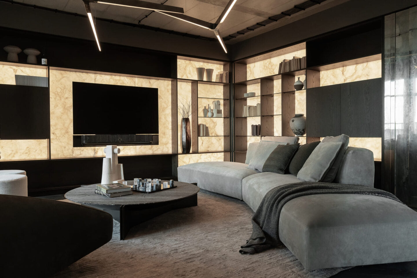 Bang & Olufsen live: Klang, Bild und Design in einer Suite, die Technik als Teil der Architektur zeigt.